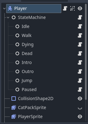 Enter the node-based state machine, where much of this functionality is removed from the player script altogether and delegated to state scripts via a StateMachine object.