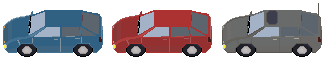 Still, I moved at a pretty good pace of steadily adding functionalities while periodically revamping portions of the visuals. I took some shortcuts, such as reusing portions of assets. There are six vehicles that can appear on the highway: three cars, two vans, and a bus. The three cars are… the same car in different colors and with one having a sunroof. After creating the first one (red), the blue and gray variants took almost no time.